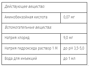 Повышенная чувствительность к аминобензойной кислоте и вспомогательным веществам.