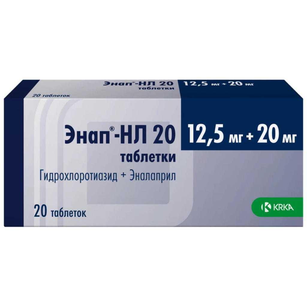 Действующие вещества: эналаприла малеат 20 мг и гидрохлортиазид 12,5 мг;