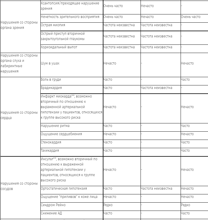 **Частота случаев была сравнима с частотой, наблюдавшейся в клинических исследованиях при приеме плацебо или другого препарата сравнения.