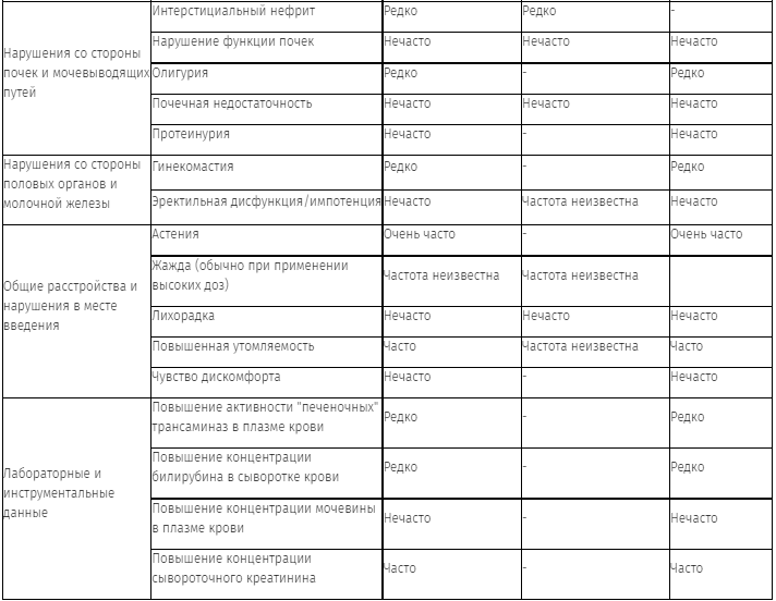 ***Частые мышечные судороги наблюдались при применении гидрохлоротиазида в дозах 12,5 мг и 25 мг, нечастые мышечные судороги наблюдались при применении гидрохлоротиазида в дозе 6 мг.