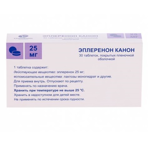 Каждая таблетка, покрытая пленочной оболочкой, содержит 25 мг эплеренона.