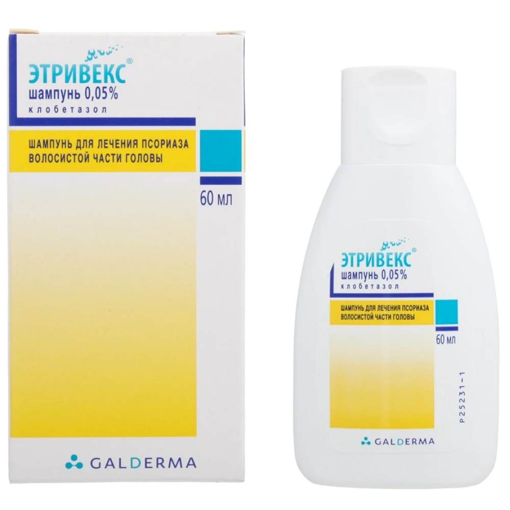 Шампунь Этривекс® следует наносить 1 раз в день на сухую кожу головы, тщательно втирая в пораженные участки. Для одного нанесения на всю кожу волосистой части головы достаточно около 7,5 мл (половина столовой ложки) препарата.