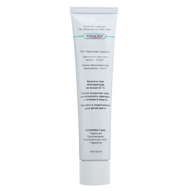 Активные вещества: масло эвкалиптовое 10 г, масло хвои сосны 3 г.