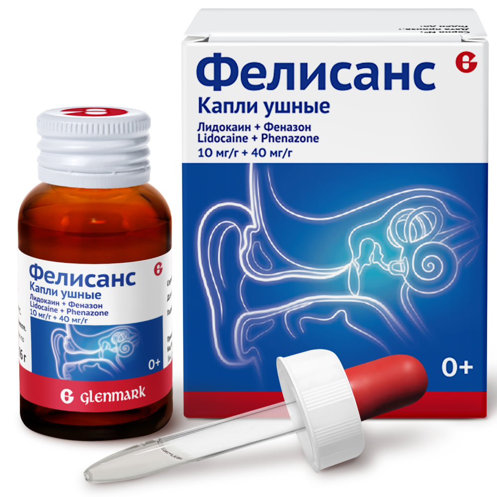 1 г капель ушных содержит 10 мг лидокаина гидрохлорида и 40 мг феназона.