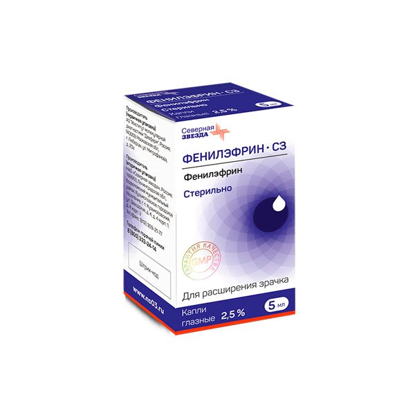 После инстилляции фенилэфрин сокращает дилататор зрачка и гладкие мышцы артериол конъюнктивы, тем самым вызывая расширение зрачка. Мидриаз наступает в течение 10-60 мин после однократного закапывания. Т.к. фенилэфрин оказывает незначительное воздействие на цилиарную мышцу, мидриаз возникает без циклоплегии.