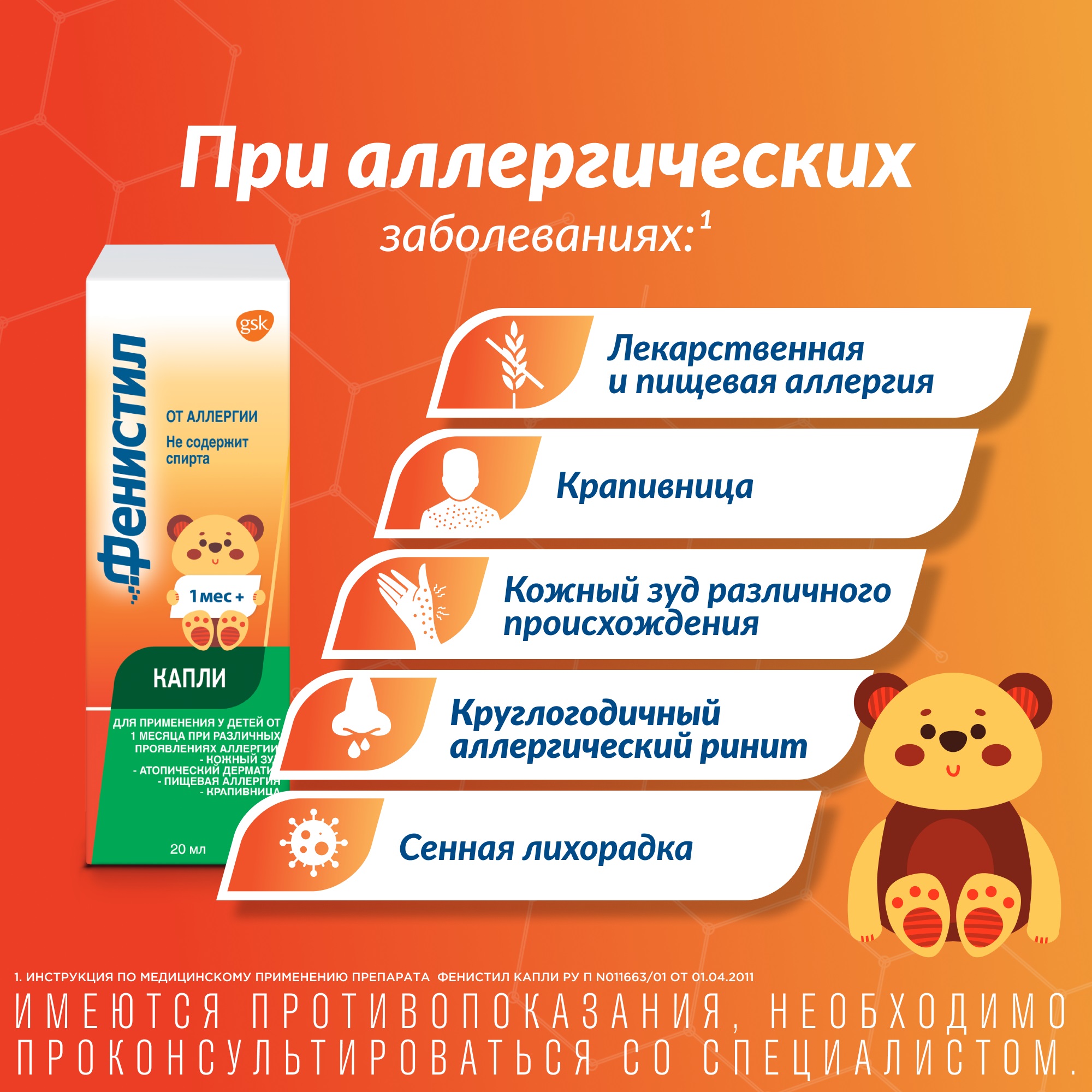 У детей в возрасте от 1 месяца до 1 года препарат следует применять только по назначению врача и при наличии показаний к применению блокаторов гистаминовых H1-рецепторов.