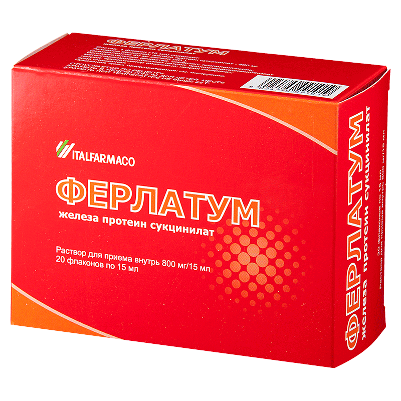 Антианемический препарат. Ферлатум содержит железа протеин сукцинилат, представляющий собой комплексное соединение, где атомы трехвалентного железа окружены полусинтетическим белковым носителем, предотвращающим повреждение слизистой оболочки желудка.