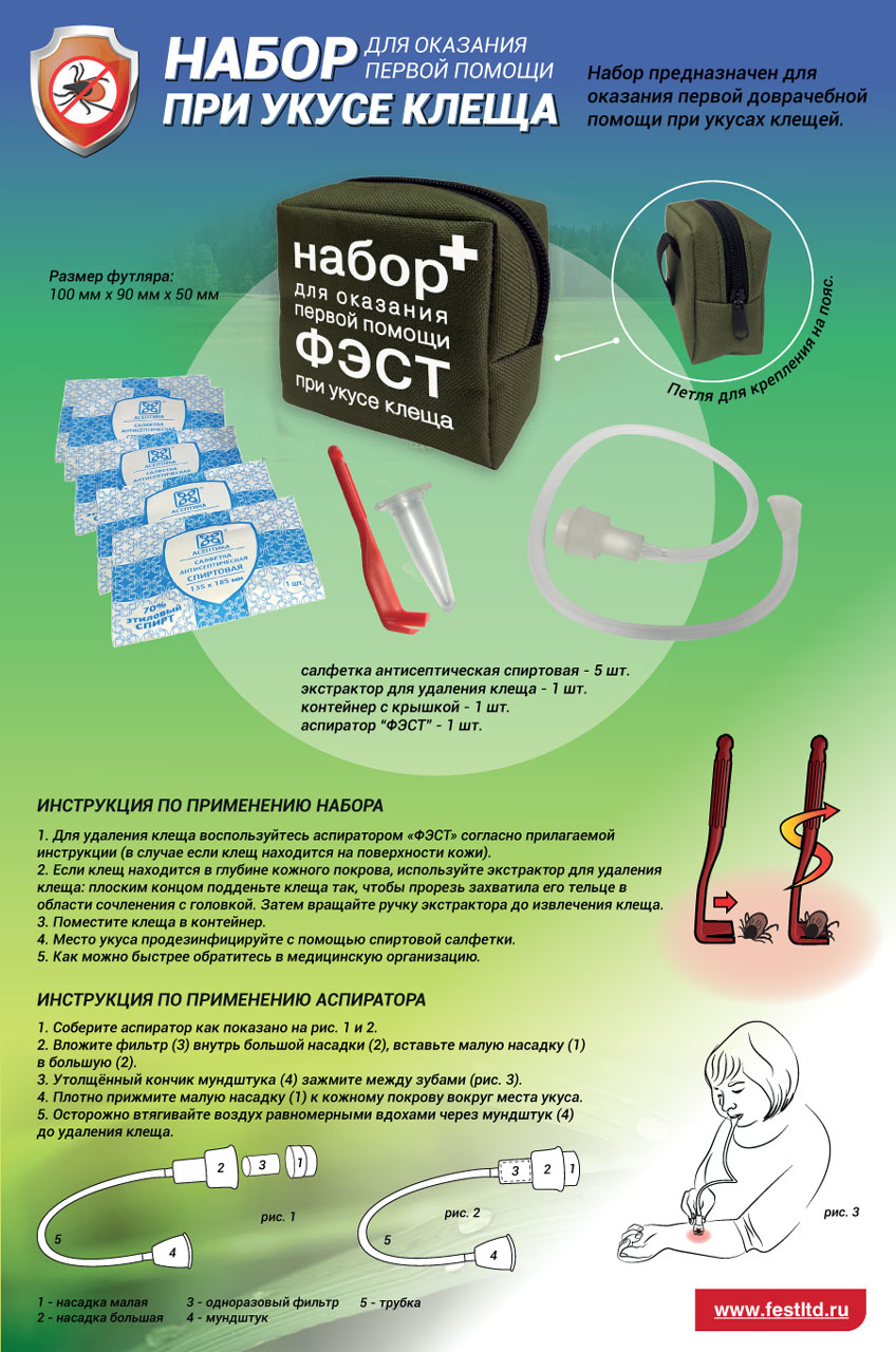 Набор предназначен для оказания первой доврачебной помощи при укусах клещей.