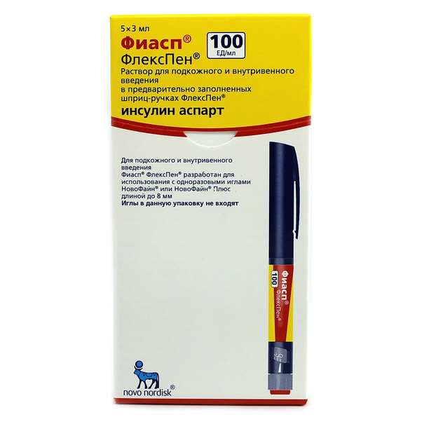 Активное вещество: инсулин аспарт 100 ЕД (эквивалентно 3.5 мг).