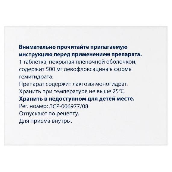 Активное вещество: левофлоксацин (в форме гемигидрата) 500 мг.