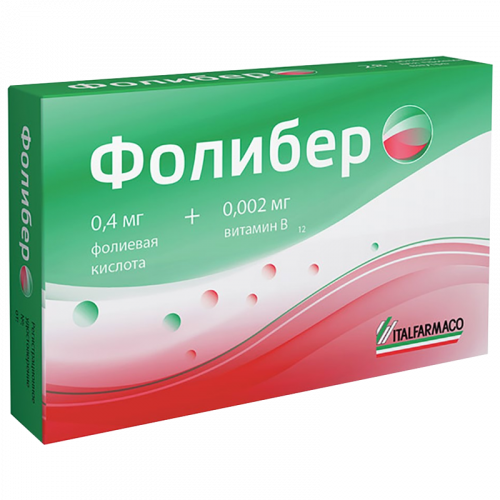 Фармакологическое действие препарата Фолибер заключается в том, что его применение позволяет преодолеть метаболическую блокаду, которая наблюдается у матерей детей с дефектами нервной трубки. Специфическая природа этой метаболической блокады заключается в метаболизме незаменимой аминокислоты метионина, при котором фолат и витамин В12 являются ключевыми элементами, поскольку они ответственны за повторное метилирование гомоцистеина в метионин. 400 мкг фолиевой кислоты является минимальной эффективной суточной дозой, рекомендованной Центрами по профилактике заболеваний (США, Великобритания, Австралия) здоровым женщинам в качестве дополнительного суточного потребления для предупреждения развития дефектов нервной трубки у плода.