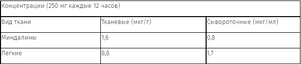 Исследования in vivo на животных показали, что кларитромицин присутствует во всех тканях, за исключением нейтральной нервной системы (ЦНС) в концентрациях, в несколько раз превышающих плазменные. Наиболее высокие концентрации (в 10-20 раз выше плазменных) обнаруживались в печени и легких.