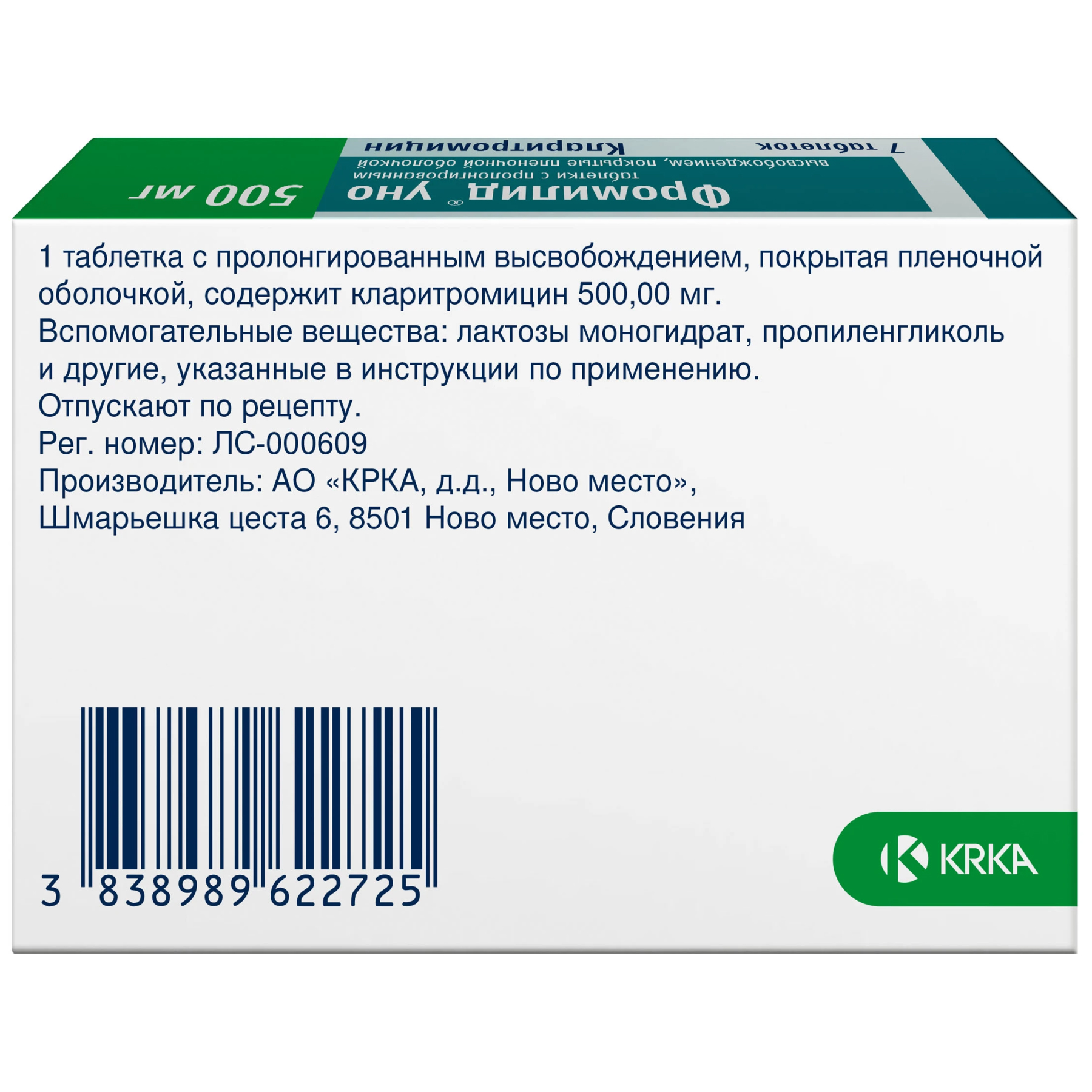 При более тяжелых инфекциях рекомендуемая доза составляет 1 таблетка 500 мг с пролонгированным высвобождением кларитромицина.