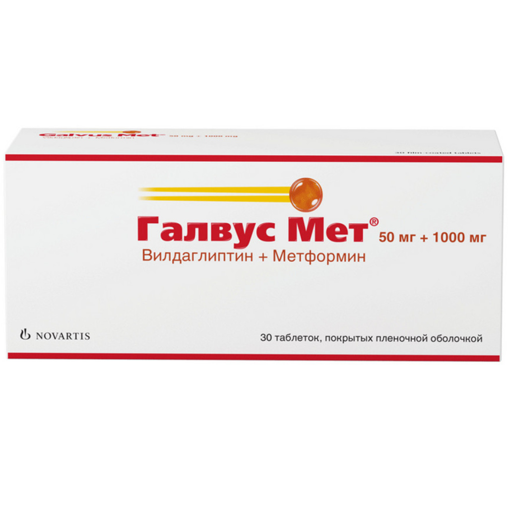 При приеме внутрь натощак вилдаглиптин быстро всасывается, а его Сmах достигается через 1.75 ч после приема. При одновременном приеме с пищей скорость абсорбции вилдаглиптина снижается незначительно: отмечается уменьшение Сmах на 19% и увеличение времени ее достижения до 2.5 ч. Однако прием пищи не оказывает влияния на степень всасывания и AUC. Вилдаглиптин быстро всасывается, а его абсолютная биодоступность после приема внутрь составляет 85%. Сmах и AUC в терапевтическом диапазоне доз увеличиваются примерно пропорционально дозе. Степень связывания вилдаглиптина с белками плазмы крови низкая (9.3%). Препарат распределяется равномерно между плазмой и эритроцитами. Распределение вилдаглиптина происходит предположительно экстраваскулярно, после в/в введения Vss составляет 71 л. В организме человека метаболизируется 69% дозы вилдаглиптина. Основной метаболит, LAY151 (57% дозы), фармакологически неактивен и является продуктом гидролиза циано-компонента. Около 4% дозы подвергается амидному гидролизу. В исследованиях in vivo у животных с дефицитом ДПП-4 отмечается частичное положительное влияние данного фермента на гидролиз вилдаглиптина. После приема внутрь меченного радиоактивной меткой вилдаглиптина около 85% дозы выводится почками и 15% через кишечник, почечная экскреция неизмененного вилдаглиптина составляет 23%. При в/в введении у здоровых добровольцев средний Т1/2 достигает 2 ч, общий плазменный клиренс и почечный клиренс вилдаглиптина составляют 41 л/ч и 13 л/ч соответственно. Т1/2 после приема внутрь составляет около 3 ч независимо от дозы.