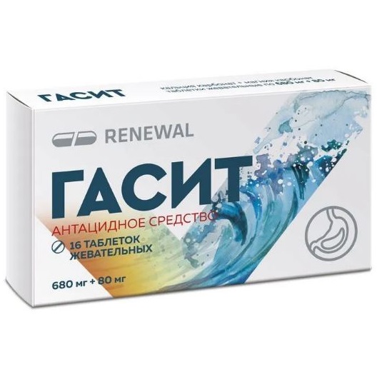 Антацидный препарат местного действия. Таблетка препарата Гасит содержит антацидные вещества - кальция карбонат и магния карбонат, которые обеспечивают быструю и продолжительную нейтрализацию избыточной соляной кислоты желудочного сока, тем самым оказывает защитное действие на слизистую оболочку желудка. Достижение положительного эффекта в течение 3-5 минут обусловлено хорошей растворимостью таблеток и высоким содержанием кальция.