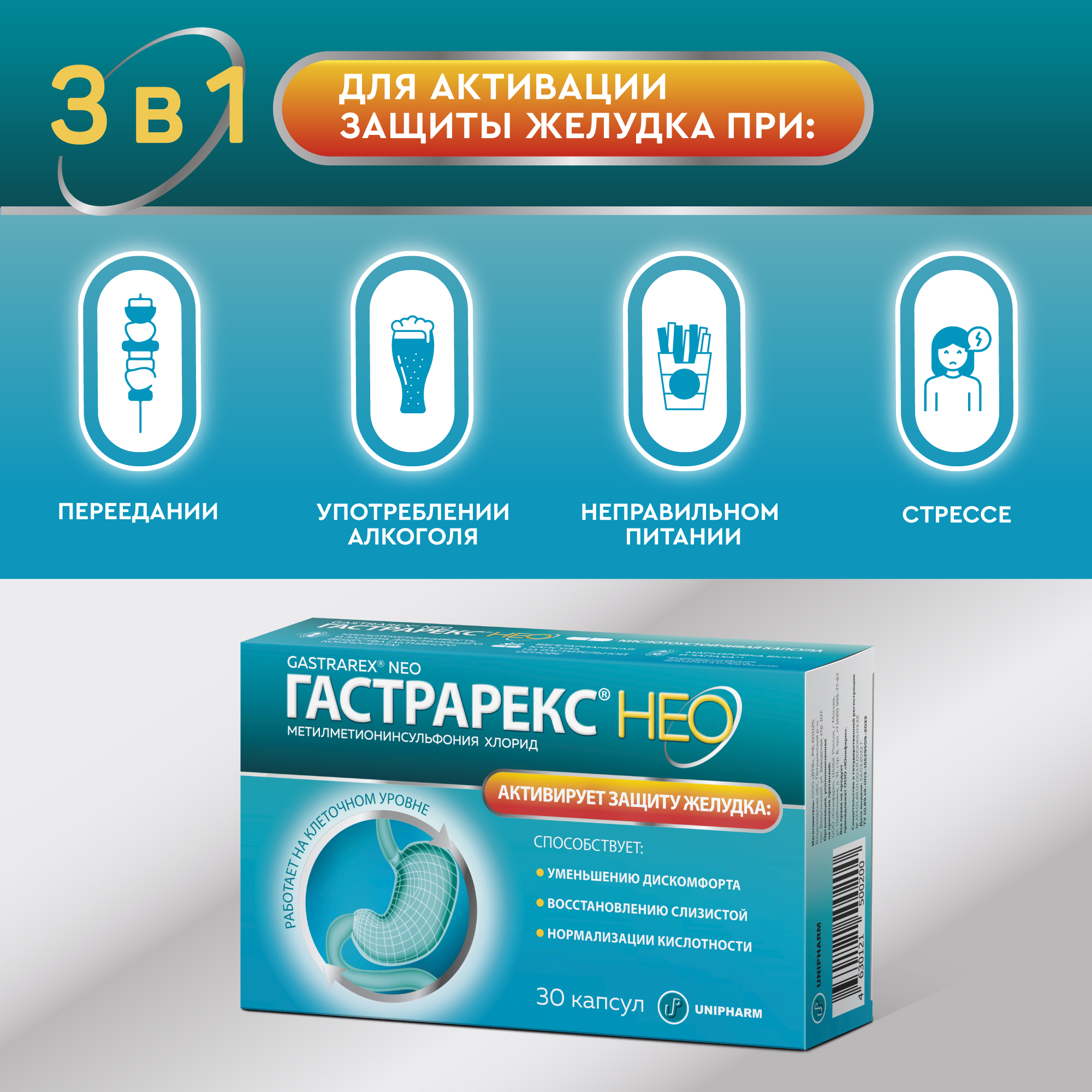 Гастрарекс® Нео (Gastrarex® Neo) - содержит метилметионинсульфония хлорид.
