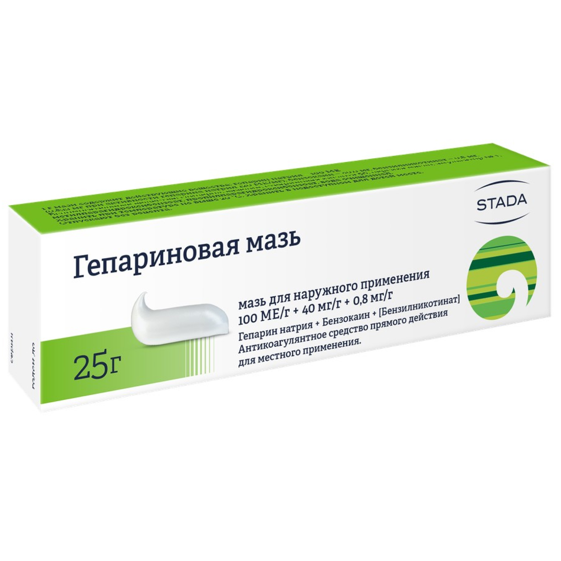 Действующие вещества: гепарин натрия - 100 ME (0,833 мг при активности гепарина натрия 120 МЕ/мг), бензокаин - 40,0 мг, бензилникотинат - 0,8 мг;