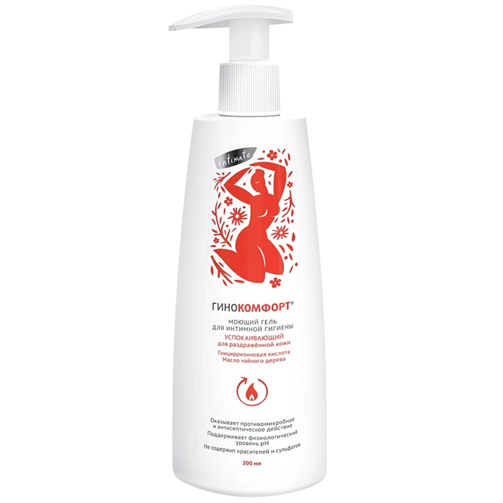 Синтетическое белье, гигиенические прокладки, частые депиляции и множество других факторов неизбежно влияют на состояние кожи и слизистой интимной зоны. Правильная гигиена часто позволяет избежать многих проблем. Вместо раздражения – комфорт и мягкость, вместо жжения – свежесть и чистота, вместо воспаления – баланс и защита. В составе успокаивающего геля ГИНОКОМФОРТ органично сочетаются 7 активных компонентов, направленных на поддержку интимного здоровье. Глицирризиновая кислота и пантенол в средстве для интимной гигиены успокаивают, смягчают кожу и слизистую, способствуя снятию раздражения и покраснения. Пироктоноламин и масло чайного дерева обладают выраженными противомикробными свойствами. Молочная кислота и пребиотический комплекс поддерживают физиологический уровень pH и нормализуют баланс микрофлоры женщины. Результат геля для интимной гигиены: деликатный уход за интимной зоной даже при воспалении, смягчение неприятных проявлений: раздражения, жжения, покраснения; поддержка баланса интимной флоры. Гель не содержит химических отдушек, красителей, сульфатов и иных раздражающих кожу компонентов. Средство подходит для ежедневного применения. ГИНОКОМФОРТ – деликатное решение интимных проблем.