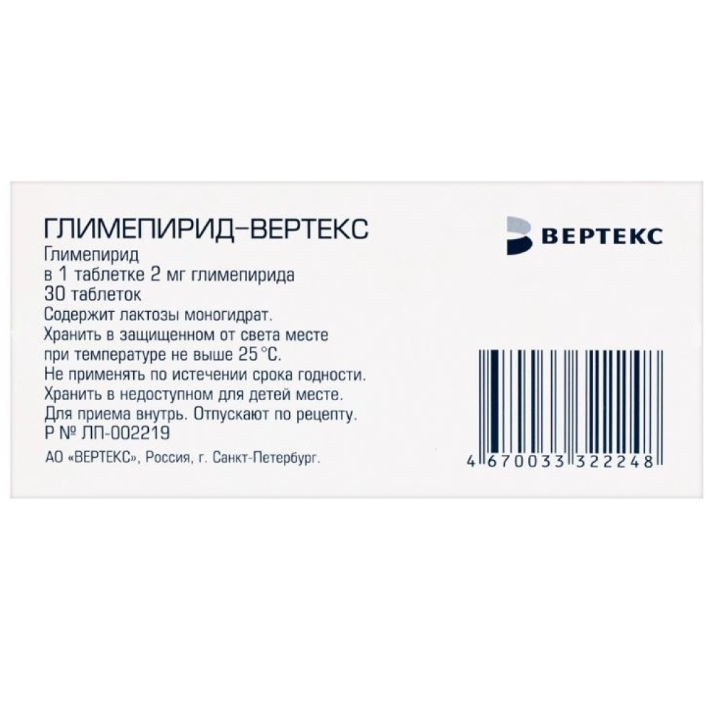 Действующее вещество: глимепирид - 2,0 мг;