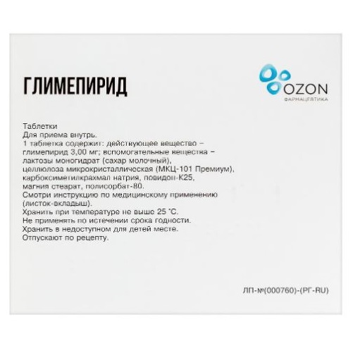 Активное вещество: глимепирид 3 мг.