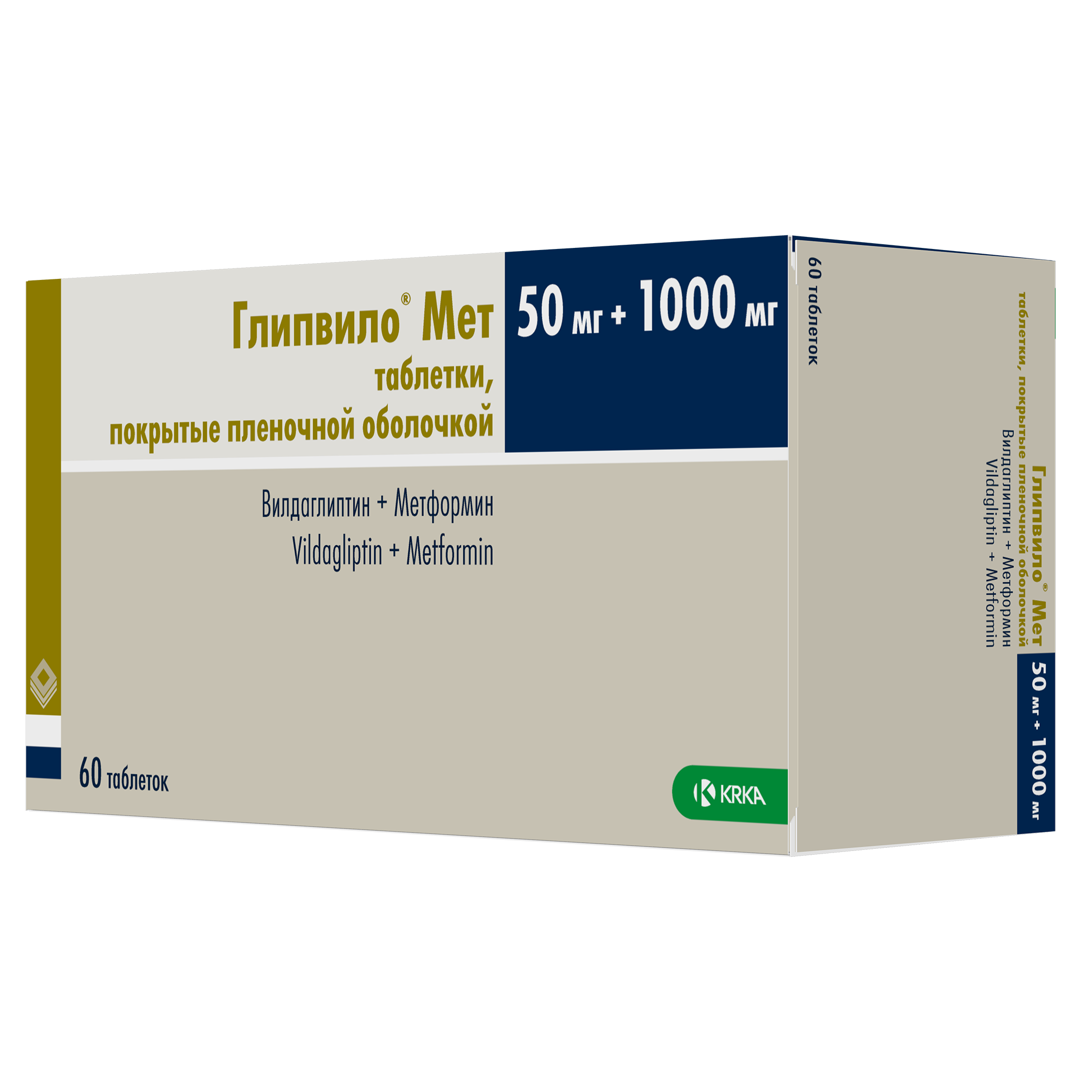 ГлипвилоМет, 50 мг + 1000 мг, таблетки, покрытые пленочной оболочкой