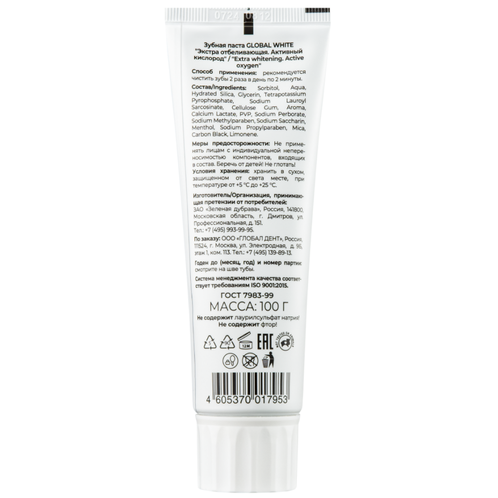 Инструкция по применению Global White Extra 100 г паста зубная отбеливающая