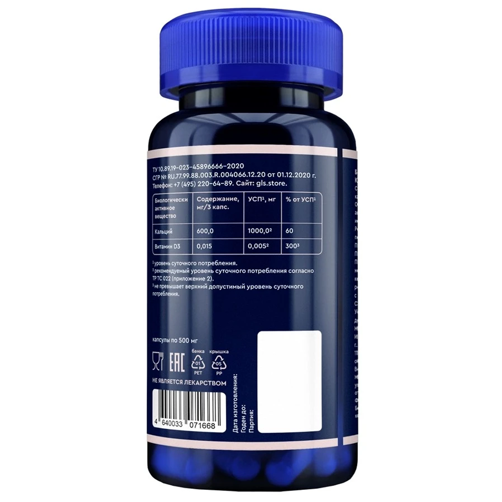GLS КАЛЬЦИЙ С ВИТАМИНОМ D3 - Биологически активная добавка (БАД) к пище - кальций важнейший макроэлемент организма, необходимый для естественного обновления и предупреждения структурных изменений костной ткани, а также для поддержания здорового состояния кожи, волос и ногтей.