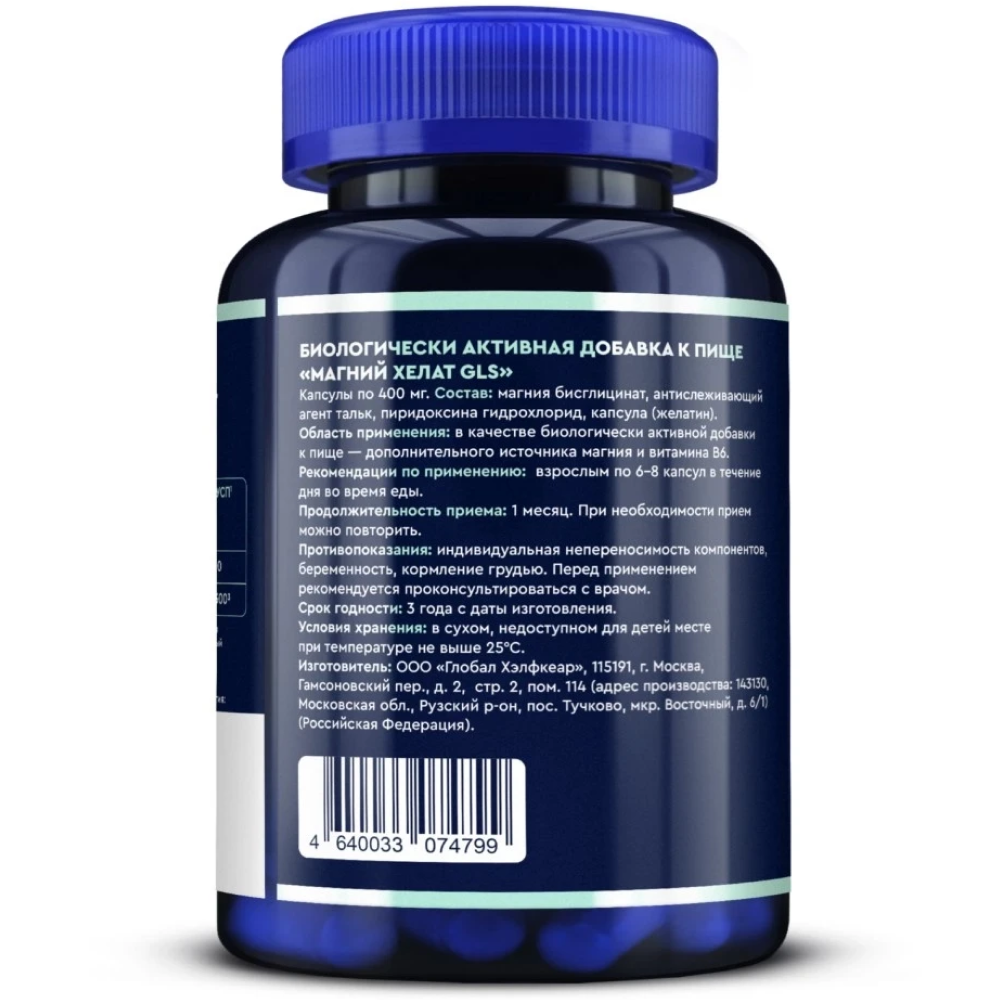 Магния бисглицинат, антислеживающий агент тальк, пиридоксида гидрохлорид, капсула (желатин).