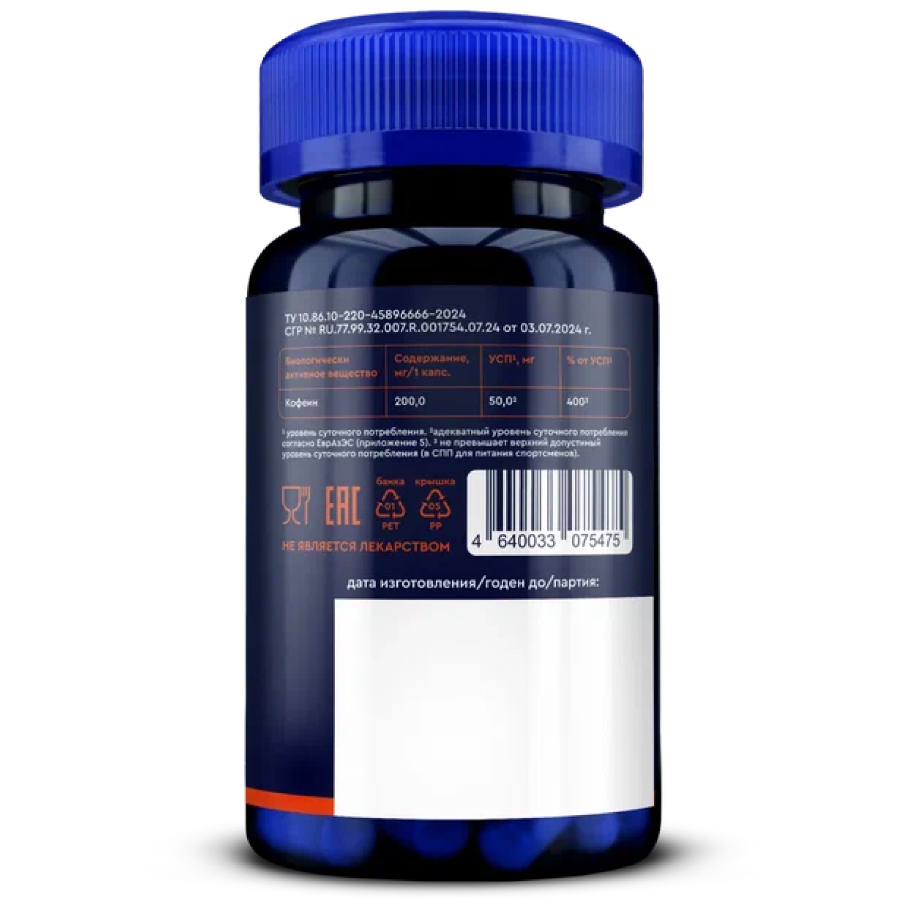 Вспомогательные вещества: антислеживающие агенты микрокристаллическая целлюлоза кальциевая соль стеариновой кислоты, капсула (гидроксипропилметилцеллюлоза).