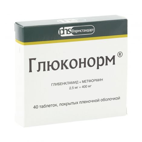 Глюконорм® представляет собой фиксированную комбинацию двух пероральных гипогликемических средств различных фармакологических групп: метформина и глибенкламида.