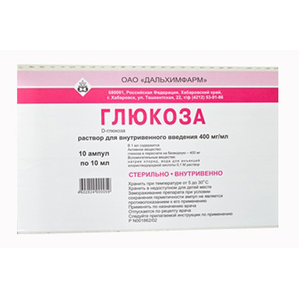 Актвиное вещество: глюкоза в пересчете на безводную - 400 мг.