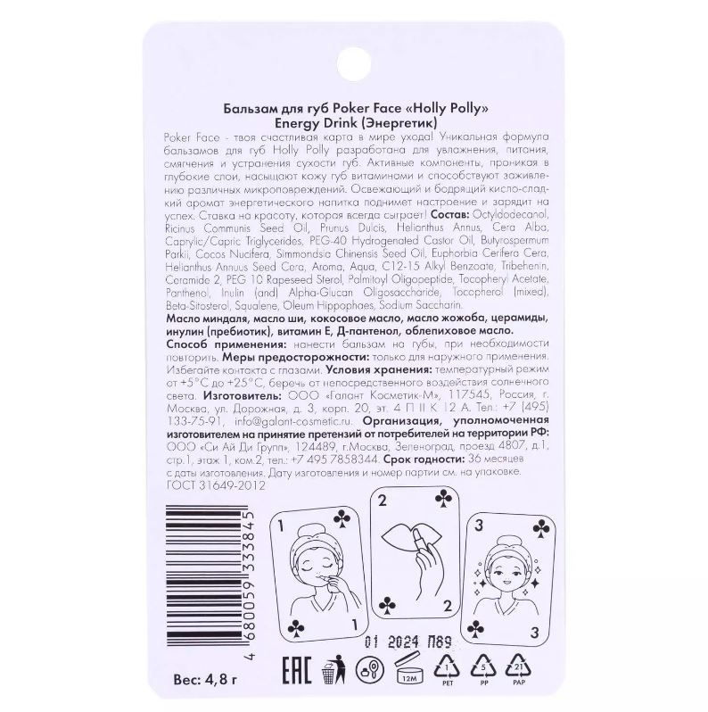 Уникальная формула бальзама для губ Holly Polly «Энергетик» разработана для увлажнения, питания, смягчения и устранения сухости губ.