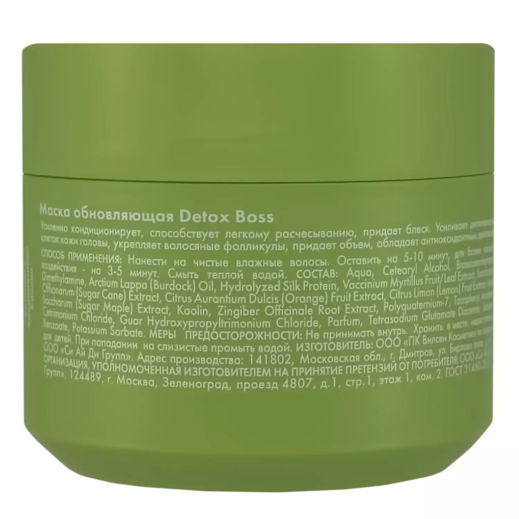 Маска Detox Boss – инновационная разработка Holly Polly для мощного и бережного очищения волос. Средство глубоко очищает волосы и кожу головы, выводит токсины, оказывает эффективное антиоксидантное действие. Питательные растительные компоненты, включенные в детокс-формулу, оживляют волосы, возвращают жизненную силу, придавая локонам мягкость и шелковистость. Маска Detox Boss – интенсивная терапия волос, ослабленных воздействием внешней среды. Может использоваться как экспресс- кондиционирующее средство или как маска длительного действия. Усиленно кондиционирует, придает живой блеск, способствует регенерации клеток кожи головы. Результат применения: чистые, здоровые волосы, естественный блеск и восстановление.