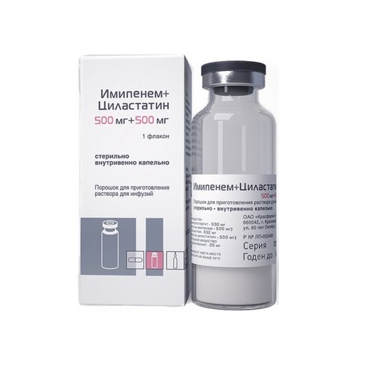 Активные вещества: имипенем (в форме моногидрата) 500 мг, циластатин (в форме циластатина натрия) 500 мг.