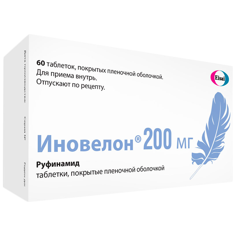 Клиническая программа разработки препарата Иновелон® включала более 1900 пациентов с различными типами эпилепсии. Наиболее частыми нежелательными реакциями были головная боль, головокружение, повышенная утомляемость и сонливость. Наиболее частыми нежелательными реакциями у пациентов с синдромом Леннокса-Гасто были сонливость и рвота. Нежелательные реакции были в основном легкой или умеренной степени тяжести. Нежелательные реакции, приводившие к выходу пациентов из исследований, отмечались в 8.2% случаев у пациентов с синдромом Леннокса-Гасто, получавших руфинамид, и в 0% случаев - у пациентов, получавших плацебо. Наиболее частыми нежелательными реакциями, приводившими к отмене препарата, были сыпь и рвота.