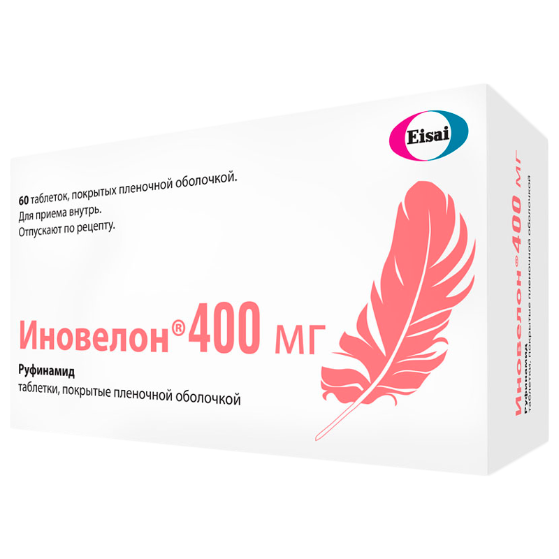 Клиническая программа разработки препарата Иновелон® включала более 1900 пациентов с различными типами эпилепсии. Наиболее частыми нежелательными реакциями были головная боль, головокружение, повышенная утомляемость и сонливость. Наиболее частыми нежелательными реакциями у пациентов с синдромом Леннокса-Гасто были сонливость и рвота. Нежелательные реакции были в основном легкой или умеренной степени тяжести. Нежелательные реакции, приводившие к выходу пациентов из исследований, отмечались в 8.2% случаев у пациентов с синдромом Леннокса-Гасто, получавших руфинамид, и в 0% случаев - у пациентов, получавших плацебо. Наиболее частыми нежелательными реакциями, приводившими к отмене препарата, были сыпь и рвота.