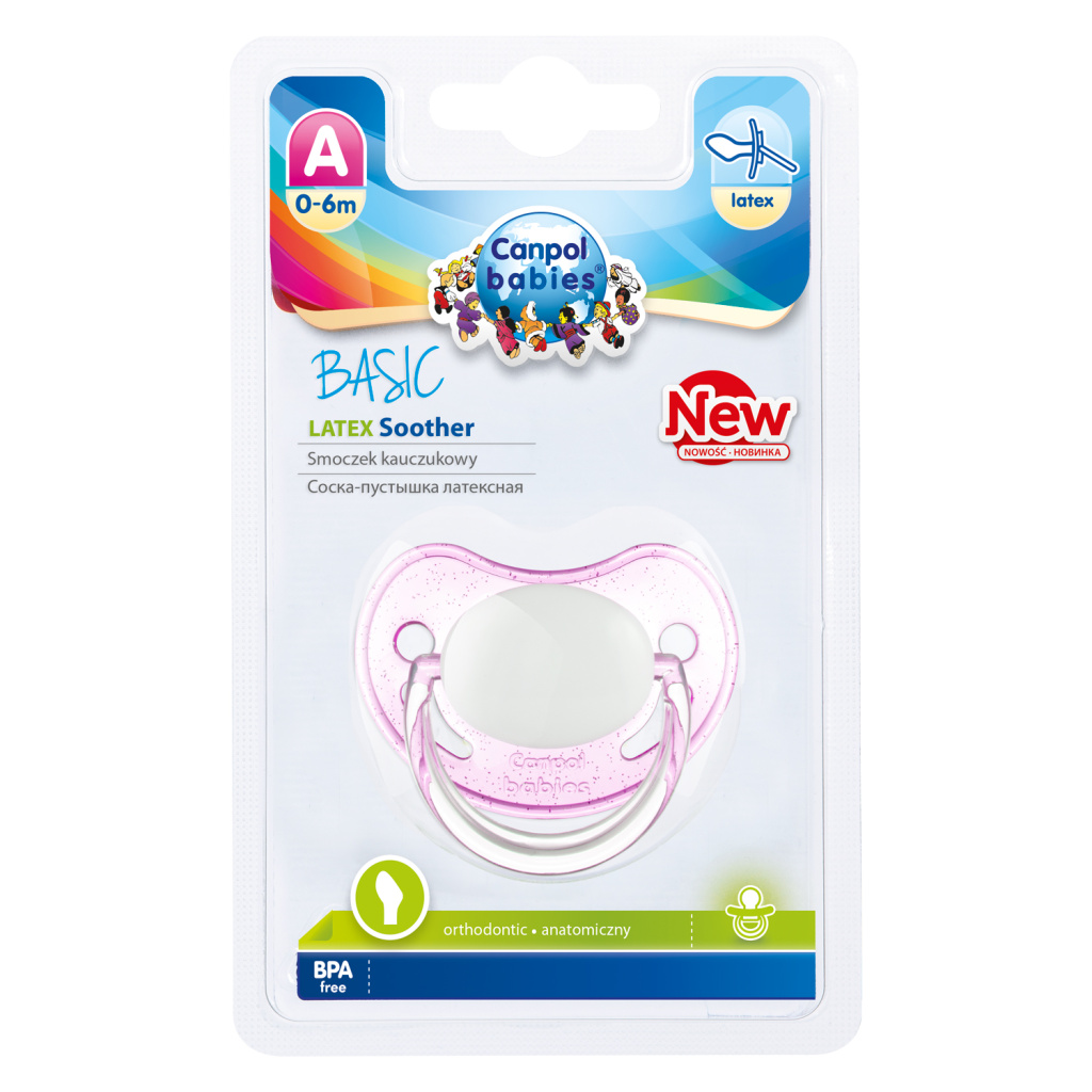 Пустышка круглая латекс анатомическая, 0-6 Basic. Пустышка круглая латексная изготовлена из высококачественного натурального латекса - она очень мягкая и приятная для ребенка, при этом не слипается во время использования.