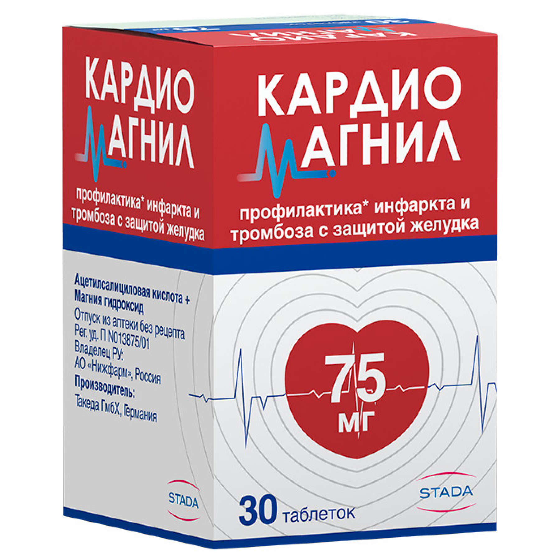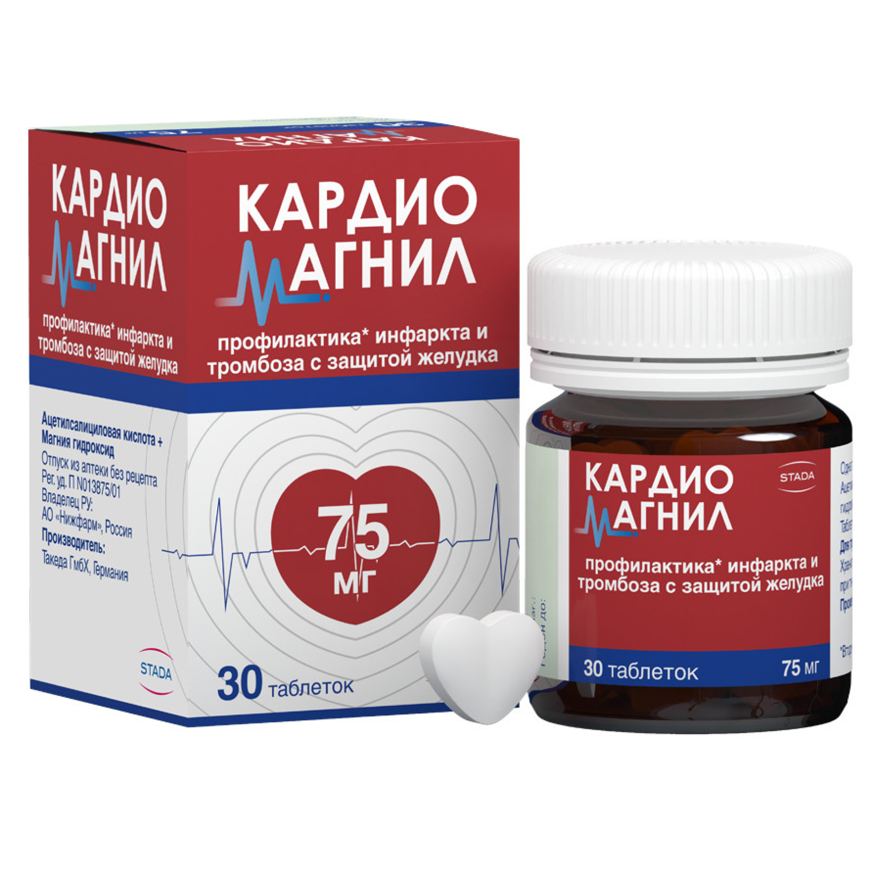 Действующие вещества: Ацетилсалициловая кислота 75 мг, Магния гидроксид 15,2 мг.