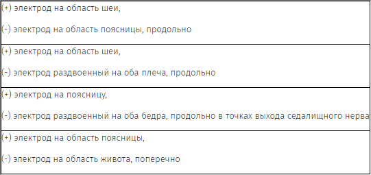 Возможные варианты расположения прокладок (определяет врач-физиотерапевт):