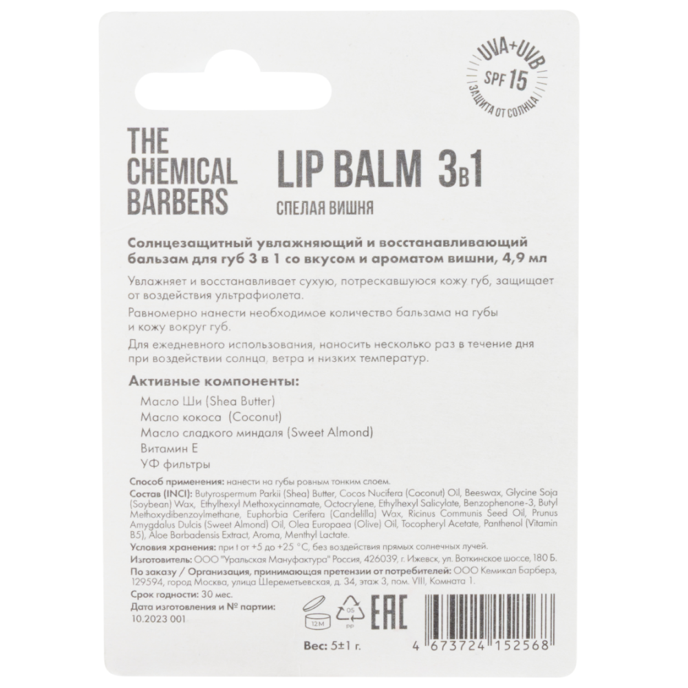 Бальзам для комплексного ухода и интенсивного питания увлажнения и защиты нежной кожи губ и контура губ с легким освежающим эффектом.