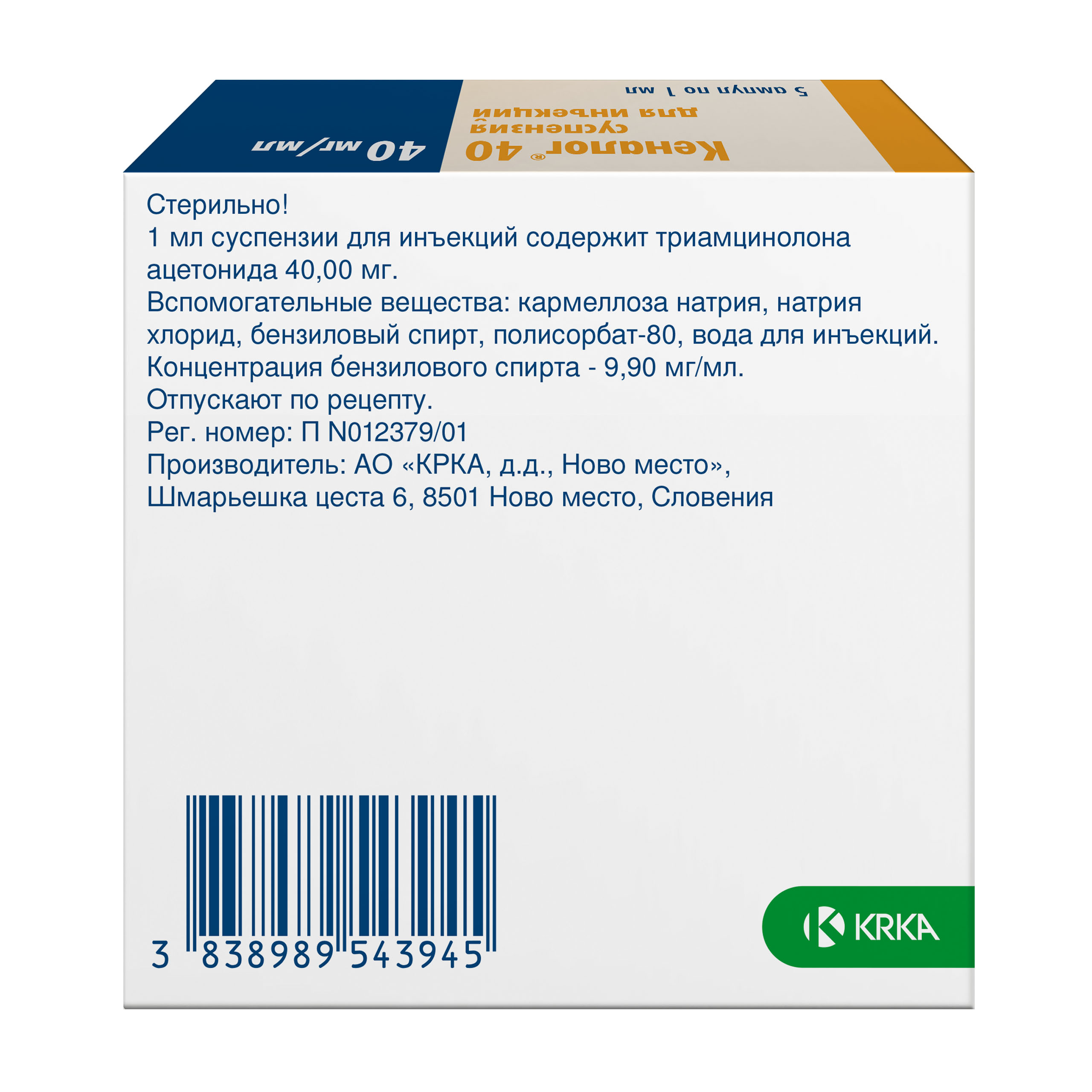 Препарат Кеналог® 40 не предназначен для внутривенного, внутрикожного, внутриглазного, эпидурального и интратекального применения.