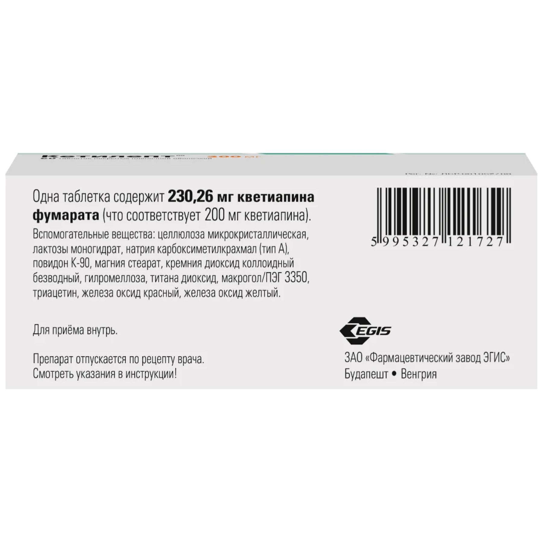 T1/2 составляет около 7 ч. Приблизительно 73% кветиапина выводится с мочой и 21% с калом. Менее 5% кветиапина не подвергается метаболизму и выводится в неизменном виде почками или калом.