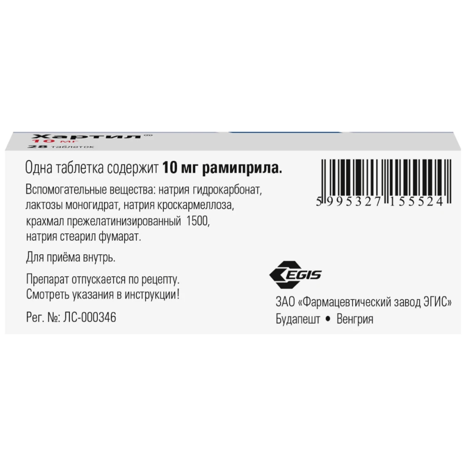 При непереносимости лактозы следует учитывать ее содержание в каждой таблетке: Хартил® 2.5 мг - 158.8 мг, Хартил® 5 мг - 96.47 мг, Хартил® 10 мг - 193.2 мг.