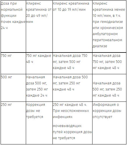 Взрослым пациентам с нормальной функцией почек (клиренс креатинина более 50 мл/мин) применять в соответствии с представленными в таблице схемами: