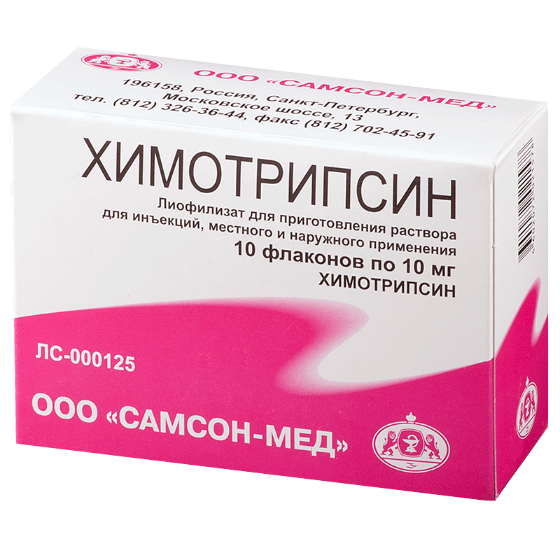 Действующее вещество: химотрипсин 1 -10 мг.