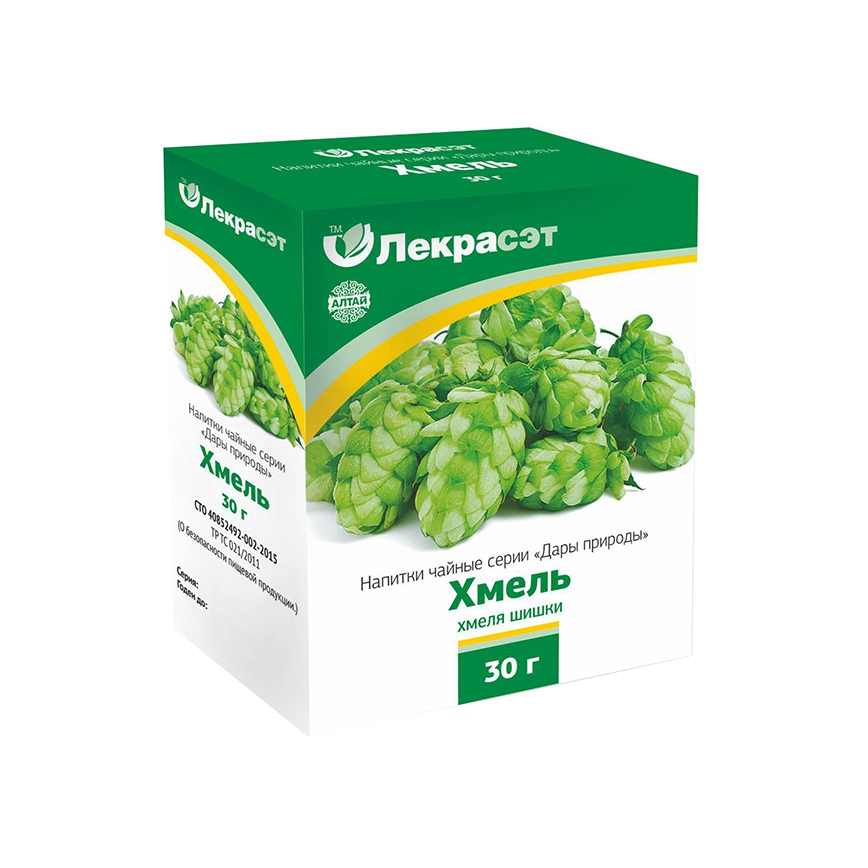 Комплекс биологически активных веществ (в т. ч. флавоноидов, гормонов, витаминов) обуславливает противовоспалительные, капилляроукрепляющие, гипосенсибилизирующие и болеутоляющие свойства. Кроме того, галеновы препараты шишек хмеля обладают регенеративными, бактерицидными и фунгицидными свойствами. Антимикробная активность объясняется наличием горьких кислот гумулона и лупулона. Имеются данные об эстрогенной активности экстракта из шишек хмеля.
