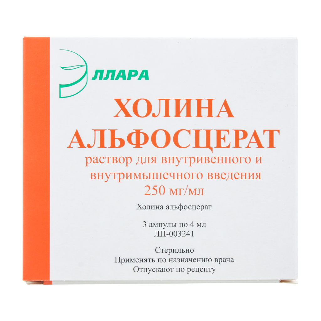 Активное вещество: холина альфосцерат (глицерилфосфорилхолина гидрат) 250 мг.