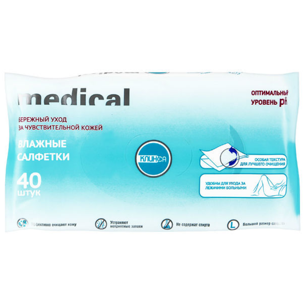 Клинса 40 шт салфетки влажные для больничной гигиены