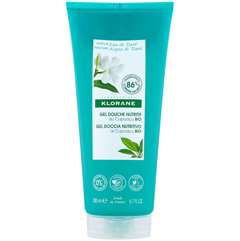 Нежное и ароматное очищение подарит Гель для душа Вода Тиаре от Клоран. Формула без мыла, тенсиоактивных сульфатов и силиконов уважительно относится к природному балансу кожи, не сушит эпидермис и не вызывает дикомфорт. Средство обладает высокой переносимостью и физиологическим рН. Благодаря маслу купуасу гель для душа Klorane Gel douche Eau de Tiare увлажняет и смягчает кожу. Аромат цветков тиаре дополнен нотками теплого песка и мандарина. Биоразлагаемая формула средства на 86% состоит из ингредиентов природного происхождения.