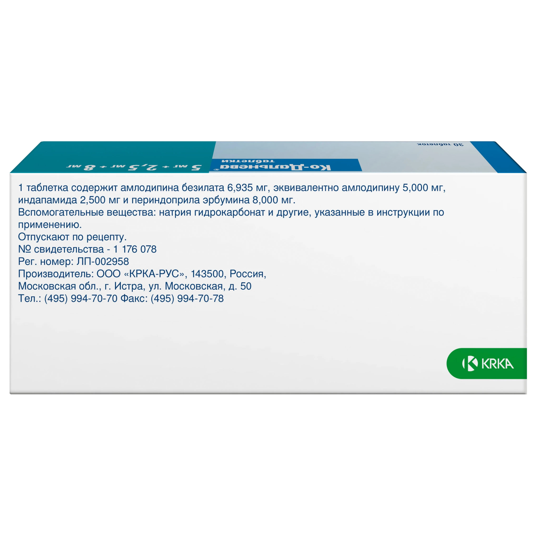 Максимальная суточная доза препарата Ко-Дальнева® составляет 10 мг амлодипина + 2,5 мг индапамида + 8 мг периндоприла.